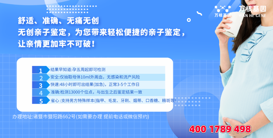 诸暨个人dna亲子鉴定办理地址:诸暨市暨阳路662号(如需要办理 提前电话或微信预约)-预约电话:4001789498。